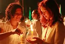 At times, special events are also held, such as a recital of the entire Buddhist scriptures and ceremonies for avowing oneself as a Buddhist lay person.[47] The Dhammakaya Temple is particularly known for its visually grand celebration.[48][49]