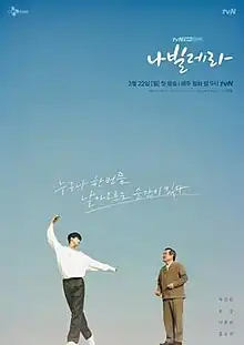 Navillera (Korean: 나빌레라; RR: Nabillera) is a 2021 South Korean television series starring Park In-hwan, Song Kang, Na Moon-hee, and Hong Seung-hee.[1] Based on the Daum webtoon of the same name written by Hun and illustrated by Ji-min between 2016 and 2017, it aired on tvN from March 22 to April 27, 2021.[2][3] It is also available for streaming on Netflix.[4]