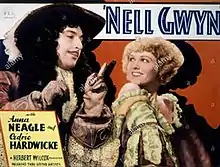 Nell Gwyn is a 1934 British historical drama film directed by Herbert Wilcox and starring Anna Neagle, Cedric Hardwicke, Jeanne de Casalis, Miles Malleson and Moore Marriott. The film portrays the historical romance between Charles II of England and the actress Nell Gwyn.[1] In the opening credits, the dialogue is credited to "King Charles II, Samuel Pepys and Nell Gwyn" with additional dialogue by Miles Malleson.[2] It was also released as Mistress Nell Gwyn.