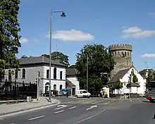This Norman keep was built c.1200 by Theobald Walter, 1st Baron Butler and completed by his son Theobald le Botiller c1220.[10] The circular keep is over thirty metres high and its base has a diameter of sixteen metres. It is one of the finest of its kind in Ireland.[10] The crown of crenellations and ring of clerestory windows were added at the instigation of Bishop Michael Flannery in 1861. The intention was that the keep would become the Bell tower of a Pugin-designed cathedral that was never built.[10] The keep now features on the logos of a number of local clubs and businesses including Nenagh Town Council.[13] The castle and grounds were extensively renovated between 2009 and 2013. This project was aimed to position the castle as a key tourist attraction in the area. It is now open to the public.[14][15]