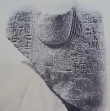 In 709 BC, Sargon won against seven kings in the land of Ia', in the district of Iadnana or Atnana.[74] The land of Ia' is assumed to be the Assyrian name for Cyprus, and some scholars suggest that the latter may mean 'the islands of the Danaans', or Greece. There are other inscriptions referring to the land of Ia' in Sargon's palace at Khorsabad.[75] Cyprus was thus absorbed into the Assyrian Empire, with the victory commemorated with a stele found near present-day Larnaca.[76]