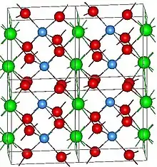 ![]() The structure of Neodymium tanatalate. Atoms are: O(red), Ta(blue) and Nd(green) | |