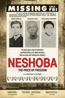 Neshoba: The Price of Freedom is a 2008 documentary film about events and attitudes in Neshoba County, Mississippi, especially the 1964 murders of Chaney, Goodman, and Schwerner. The film premiered at the 2008 Indie Memphis Film Festival, where it won the Jury Award for Best Documentary.[1]
