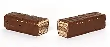 Tex was created in around 1955 by Rowntree's, and first sold in Canada (around the same time as Coffee Crisp). The bar combines the aerated chocolate of Aero with the wafers of a Kit Kat, and is covered in milk chocolate. Rowntree's launched Tex to the South African market in 1956, where it had more success and is still sold to this day. Rowntree's was later acquired by Nestlé, and now Tex is under the Nestlé brand. Tex was later discontinued in Canada, but is still available via import shops catering to South African expats. As of February 2015, Tex weighed 40 grams.[1][2][3] It is easy to spot with its yellow wrapper.