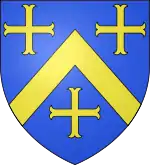 Its arms are "d’azur au chevron d’or accompagné de trois croisettes ancrées du même".