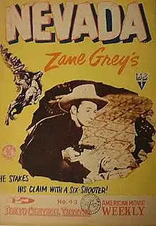 Nevada is a 1944 Western film based on the 1928 Zane Grey novel and starring a 27-year-old Robert Mitchum, with Anne Jeffreys, Guinn "Big Boy" Williams, and Richard Martin in supporting roles. The film was written by Norman Houston from Grey's popular novel and directed by Edward Killy. Mitchum is billed with "Introducing Bob Mitchum as Jim Lacy" at the film's beginning. Although this was not Mitchum's first movie, it was his first lead role; he had previously played mainly villains.