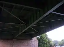 The New Hope–Lambertville Toll Bridge has a total length of 1,682 feet (513 m) and contains ten spans. It is constructed with steel girders and a reinforced concrete deck. The bridge's piers are stone faced. The toll gate is located on the Pennsylvania approach. While the DRJTBC states that it has a total of 8 toll lanes,[8] that number has shrunk to 4 toll lanes since the bridge was refurbished in 2003. This refurbishment replaced the old toll plaza with a new one, and it eliminated the toll lanes for those crossing into New Jersey.[9]