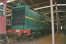 By July 1991, it had moved to CountryLink's XPT Service Centre in Sydenham (where the Paxman engined XPTs are maintained), where a spare engine was installed.[7] It returned to Thirlmere in November 1992, but was not restored to service.[8] In April 2009, 4102 was moved for further storage at the Broadmeadow Locomotive Depot where it remains to this day.