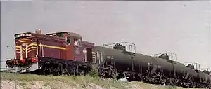 Locomotive 7201 was a diesel-hydraulic locomotive, with B-B wheel arrangement. Built in the Department of Railways Water Supply Workshops at Chullora, it performed its first light engine trial on 27 August 1965.[1] It was built on the lengthened underframe of an unused 58 class locomotive tender, but using the bogies from a Standard Goods locomotive[2] turret tender. The cab was similar to that of an X200 class and the livery was similar to a 48 class.