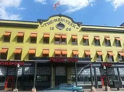 It is a three-story brick building designed to have shops on the ground floor and 62 hotel rooms above. Some hotel room suites had bathrooms; there were also single rooms served by a bathroom on each floor. It was "completely modern" in 1906, having both steam heat and electric lights.[2]