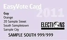 - ↑ "EasyVote cards and packs delivered to voters | Elections". Elections.nz. 17 November 2011. Retrieved 29 April 2021.