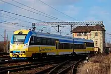 Newag 220M/221M is a series of diesel multiple units, they are two and three-section passenger trains[1] which have been manufactured since 2010. They are designed for suburban and long-distance passenger transit. They are low-floor, open-coach units produced by Newag in Nowy Sącz in Poland. Altogether 9 units have been produced which are operated by Przewozy Regionalne and Silesian Railways.[2]