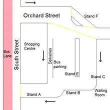 Newport bus station, on the Isle of Wight is located at Orchard Street in Newport town centre. Recent redevelopment has seen the former 1960s-built South Street bus station demolished, to make way for a new row of shops, and the current facility built behind that site.