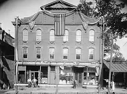The Newtown Hardware House was destroyed by fire on March 1, 1899. In addition to the Hardware store another store was completely burned. The loss was estimated at $80,000.[4] The fire was one of the worst in Newtown's history. It is thought burglars set the building on fire.[5] The building was rebuilt to the exact specifications of the original building and was reopened by Christmas of the same year and is still in operation. Today, when looking at the rear wall, lower left (northern) portion of the structure, a distinct brick line exists that outlines surviving brickwork dating before 1899.[1][6]