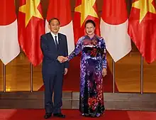Nguyễn Thị Kim Ngân (born 12 April 1954, in Bến Tre Province) is a Vietnamese economist and politician. She is the first woman in Vietnamese history to head the country's legislature, serving as the eleventh Chair of the National Assembly of Vietnam from 2016 to 2021.[1][2][3][4] She was a member of the 12th Politburo of the Communist Party, the country's highest decision-making body, in which she ranked second after General Secretary Nguyễn Phú Trọng.