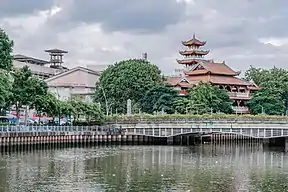 The canal became heavily polluted following intense urban development in Ho Chi Minh City after 1975. Buildings dumped domestic trash and wastewater into the canal, leading to a dark appearance and noxious odor.[4] A World Bank-funded project to restore the canal commenced in 2002, with the installation of sewers, dredging, and relocation of slums that bordered the canal.[5] Truong Sa and Hoang Sa streets, which line the canal, were landscaped with trees and walking paths.[6][7]