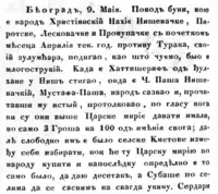 Newspaper "Novine srbske" describing the details of the rebellion taken up by Christian. The non-compliance of the freedoms for the Christians announced in the Edict of Gülhane was the reason for the uprising. Demands for improving the tax system were put forward.[1]