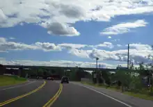 Highway 55 began at an intersection with the old Iroquois Trail, now known as Queenston Street to the west and York Road to the east. This road was part of Highway 8 until 1970, when it was transferred to Niagara Region and redesignated Niagara Regional Road 81.[4] The roadway that carried Highway 55 continued south of this intersection as Taylor Road (Niagara Regional Road 70). Continuing north, the highway passed beneath the QEW, which ascends over the Welland Canal on the Garden City Skyway. The highway entered Homer, then curved northeast and entered farmland. From here to its northern terminus, the highway was completely straight. It passed south of the St. Catharines/Niagara District Airport and later intersected Niagara Regional Road 106.[5]