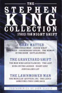 In 2000, Random House released a recorded compilation of selected stories from Night Shift, each read by John Glover.[5] The full track list of unabridged stories is as follows: