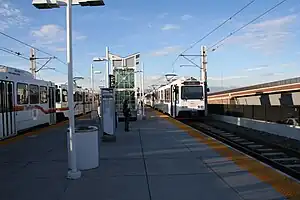 [5]Nine Mile station is an island platformed RTD light rail station in Aurora, Colorado, United States. The station was opened on November 17, 2006, and is operated by the Regional Transportation District as part of the H and R lines.[5][6] When it opened in 2006, it was the terminus of the H Line Southeast Corridor trains traveling along Interstate 225.[7] After the opening of the R Line in 2017, trains on the H Line were extended northeast to Florida station.