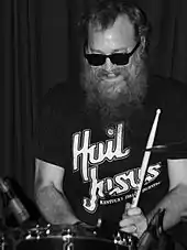Nine Pound Hammer first played at The Ross Theater, opening for the Xtian rap group, The Disciples Of Decadence, in nearby Evansville, Indiana, with drummer Toby Myrig, David Epperson, and bassist Brian (Forrest) Payne, in 1984. David and Brian left, and Bart Altman, thunderstick man from The Disciples Of Decadence, joined on bass. This lineup played a single show at the Ross Theater as The Yuppie Mop Dogs on August 31, 1985. The band played locally in Owensboro, Kentucky and Evansville, Indiana, garnering a very loyal following before relocating to Lexington, Kentucky as the Raw Recruits. The band then changed their name to The Black Sheep and became the house band at Great Scott's Depot. Darren Howard replaced Toby, and the band became Nine Pound Hammer again. The name of the band is taken from the Merle Travis song "Nine Pound Hammer".