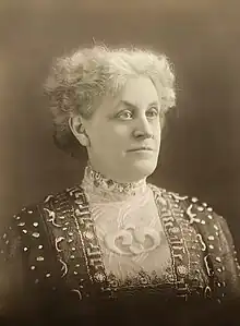 When the Fifteenth Amendment enfranchised African-American men, Elizabeth Cady Stanton and Susan B. Anthony abandoned the AERA, which supported universal suffrage, to found the National Woman Suffrage Association in 1869, saying black men should not receive the vote before white women.[38] In response, African-American suffragist Frances Ellen Watkins Harper and others joined the American Woman Suffrage Association, which supported suffrage for women and for black men. Mary Ann Shadd Cary, the second African-American woman to receive a degree from Howard University Law School, joined the National Woman Suffrage Association in 1878 when she delivered their convention's keynote address.[41] Tensions between African-American and white suffragists persisted, even after the NWSA and AWSA merged to form the National American Woman Suffrage Association in 1890.[38] By the early 1900s, white suffragists often adopted strategies designed to appease the Southern states at the expense of African-American women.[42][43] At conventions in 1901 and 1903, in Atlanta and New Orleans, NAWSA prevented African Americans from attending. At the 1911 national NAWSA conference, Martha Gruening asked the organization to formally denounce white supremacy. NAWSA president Anna Howard Shaw refused, saying she was "in favor of colored people voting", but did not want to alienate others in the suffrage movement.[44] Even NAWSA's more radical Congressional Committee, which would become the National Woman's Party, failed African-American women, most visibly by refusing to allow them to march in the nation's first suffrage parade in Washington, D.C. While the NAWSA directed Paul not to exclude African-American participants, 72 hours before the parade African-American women were directed to the back of the parade; Ida B. Wells defied these instructions and joined the Illinois unit, prompting telegrams of support.[44]