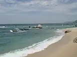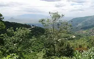 Ninh Thuận's topography is typical for the South Central Coast in that high mountains are located not only near the western border to the Central Highlands, but also near the coast, the highest of which is Chúa mountain (Vietnamese: Núi Chúa) at 1,040 metres (3,410 ft) in the north east of the province.[2] Several other peaks with heights up to 643 metres (2,110 ft), including Đá Bạc mountain (Vietnamese: Núi Đá Bạc) in the south, are located along the coast.[2] The highest mountains are located at the borders to Khánh Hòa province and Lâm Đồng province, with three mountains of over 1,600 metres (5,200 ft) and the highest at 1,652 metres (5,420 ft), Sương Mù mountain (Vietnamese: Núi Sương Mù).[2] Only a small part of the province around Phan Rang has elevations of under 50 metres (160 ft).[3] The province's major river is the Dinh River, which flows through the main lowland of the province as well as Phan Rang. It has several tributaries in the province and is connected to Don Duong Lake in Lâm Đồng province.[2]