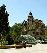 In 1896, a three-storeyed apartment house (Nizami 79) was built on the corner of Prachechnaya Street (later Gogol, now Mardanov Qardashlari Street) by architect I.V.Edel, by the order of oil magnate Murtuza Mukhtarov and in 1910, a new storey was added to it by architect Jozef Ploshko and it obtained a half-circled concept of a façade and a circled concept of a cupola.[13] Millionaire Haji Rajabli's house, now “Vatan” cinema (Nizami 75,77) was constructed on the left side of Torgovaya, between Mariinskaya and Prachechnaya Streets. On the opposite side was a building possessed by Mirza Taghiyev, a merchant from Shamakhi, where was located a popular shop of German confectioner Zeitz.[14]