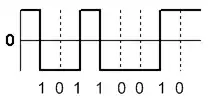 The zero between each bit is a neutral or rest condition, such as a zero amplitude in pulse-amplitude modulation (PAM), zero phase shift in phase-shift keying (PSK), or mid-frequency in frequency-shift keying (FSK). That zero condition is typically halfway between the significant condition representing a 1 bit and the other significant condition representing a 0 bit.