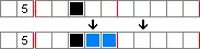 1. From the left: Since the 6 is the first number, count 6 blocks from the left edge, ending in the 6th block. Now "backfill" 4 blocks (the number obtained in step 4), so that cells 3 through 6 are filled.