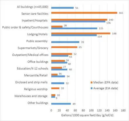 - 1 2 "2012 Commercial Buildings Energy Consumption Survey: Water Consumption in Large Buildings Summary". Commercial Buildings Energy Consumption Survey (CBECS). Environmental Information Administration, United States Environmental Protection Agency. 9 February 2017.