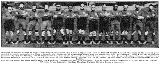 17. "Close League Match/Marists' Good Win/South Sydney Defeated/Gregory Scores All Points/Numerous Penalties Awarded". The New Zealand Herald. Vol. LXVI, no. 20385. 14 October 1929. p. 15. Retrieved 9 October 2019.
