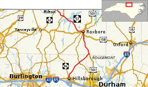 Orange0.00.0 NC 86 Hillsborough, YanceyvilleSouthern terminus