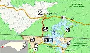 - North Carolina Highway 175, which runs along the opposite side of Chatuge Lake