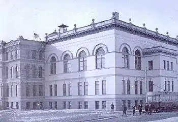 Built between 1883 and 1884, the original territorial (and later) state capitol building served as the home to the Legislative Assembly until the morning of December 28, 1930, when the original building burned down. During the fire, Secretary of State Robert Byrne saved the original copy of the state constitution, but suffered cuts and burns on his hands while breaking a window to reach the document. In the interim period without a capitol, the Legislative Assembly convened in both the War Memorial Building and the City Auditorium in Bismarck. Under the approval of Governor George F. Shafer, the current Art Deco capitol was built as a replacement between 1931 and 1934 in the midst of the Great Depression.