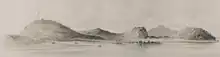 The earliest known European to visit the North Shore was French explorer Jules Dumont d'Urville, who anchored the Astrolabe at Torpedo Bay in 1827. Lottin, the ship's surveyor, climbed Takarunga / Mount Victoria, and noted the pā fortifications, huts and stonefield gardens in the area.[87] d'Urville was the first person to record the name Takapuna for the lower North Shore, when he labelled the area Taka Pouni on an 1833 map.[89]
