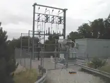 Eighteen paralleling stations are located at approximately six mile intervals[6] along the line. Each contains a single autotransformer (with the exception of Roxbury, which has two), automatic circuit breakers, motor-operated air switches, and a control shed. The autotransformers are rated at 10 MVA, 1.2% impedance, two winding, 27.5 kV.[7]