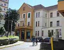 The Palacete Rosa functioned as the main block until its facilities became too small for the growing number of attendances.[6] Still in 1939, it was decided to build a new and much larger headquarters, endowed with modern equipment, with a project by the renowned architect Joseph Lutzemberger from Porto Alegre.[3] The new building was inaugurated with great solemnity on December 25, 1940, with the presence of the federal interventor Osvaldo Cordeiro de Farias, the mayor Dante Marcucci, and the blessings of Dom José Barea, bishop of Caxias.[7] In 1949, construction began on a new wing.[8] The Palacete Rosa was used as an annex until the mid-1960s, when it was demolished to make way for a large modern block.[6]