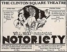 Notoriety is a 1922 American silent drama film directed by William Nigh and starring Maurine Powers, Mary Alden and Rod La Rocque.[1]