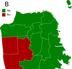 Proposition B would allow the City to issue $208 million in bonds to finance street and sidewalk improvements. This proposition required a two-thirds majority to pass.
