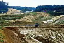 The line still under construction near the Hilpoltstein car park. The gradient, which reaches a maximum of 20 per thousand on the new line, is clearly visible.