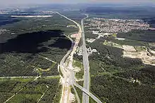The distance between centres of the line and the parallel autobahn between kilometres 13 and 48 is between 40 and 60 metres.[13]
