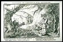 ![]() Minerva transforms Nyctimene into an owl,[lower-alpha 1] 1641 engraving by Johann Wilhelm Baur. | |