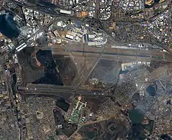 O. R. Tambo International Airport has two parallel runways adjacent to the airport's terminal buildings. There used to be a third runway, 09/27, but it was closed and became taxiway Juliet. Another decommissioned runway was 14/32 (which crossed runways 03L/21R and 03R/21L); it was converted into taxiway Echo.