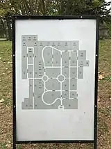 The Oakland Cemetery Company Board dedicated the 180 acres for the purpose of a cemetery.[7] The company hired J. B. Buchanan as superintendent and landscape gardener. Benjamin Grove, a cemetery engineer, from Louisville, Kentucky, produced a design in the style of a rural, garden cemetery similar to Mount Auburn Cemetery near Boston.[8] The land that the cemetery company acquired was L-shaped, consisting of Blocks 1, 3 and 4 of the Floyd estate. "The spot was covered with a thick growth of trees."[5] While old oak trees were kept, landscape gardeners added rose bushes and graveled pathways to the land. Groves submitted a plan for a total of 120 acres of the 180 acres which then became the official plat of the cemetery which the cemetery association filed with the county.[9]