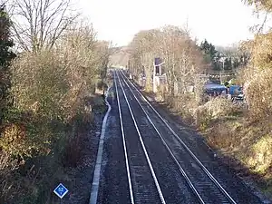 - ↑ Butt, R. V. J. (October 1995). The Directory of Railway Stations: details every public and private passenger station, halt, platform and stopping place, past and present (1st ed.). Sparkford: Patrick Stephens Ltd. p. 176. ISBN 978-1-85260-508-7. OCLC 60251199. OL 11956311M.