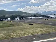 The airport is situated at an elevation of 1,521 metres (4,990 ft) above mean sea level and is equipped with a single runway designated as 01/19. This runway is 2,450 metres (8,040 ft) in length and features an asphalt surface. The commercial aviation apron provides nine stands mainly designed for narrow-body aircraft. The general aviation apron offers parking for fixed-wing aircraft and heliports for private aviation. The airport has the capacity to handle up to 22 operations per hour.