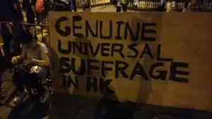 - ↑ Branigan, Tania (31 August 2014). "Hong Kong activists vow to take over financial centre in election protest", The Guardian.