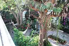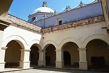 The city's main attraction is the Temple and Ex-convent of Santo Domingo de Guzmán. The complex was constructed in various stages between the 16th and 19th centuries.[1] The construction of the monastery was halted on several occasions due to the lack of manpower, due to the discovery of mines nearby such as Santa Catarina.[3] The main vault, apse, choir and sacristy of the church were not finished until 1669. The pillars of the cloister were begun at this time as well, but were never finished.[3][7]