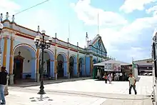 The Rodolfo Morales house is a mansion from the 18th century which he rescued and lived in. Today, the building is a cultural center with an open-air theatre, which can seat 200 people, galleries of work by local artists and a computer center. All activities and resources here are offered free of charge.[4][7][13] The house is located just north of the main square and preserves a number of Morales personal effects, including collages.[1] The building is also home to the Fundación Cultural Rodolfo Morales, A. C (Rodolfo Morales Cultural Foundation), which is a private, nonprofit organization which promotes education and culture in the Ocotlan District of the state of Oaxaca. The Foundation realizes restorations, the maintenance and conservation of architectural monuments, paintings and sculptures and trains young people in restoration work. The foundation was created in 1992 by Rodolfo Morales.[13] The Octolan railroad station was built along the old Ferrocarril San Jerónimo to San Pablo Huixtepec line in 1906. In 1909, a second platform was built.[14]